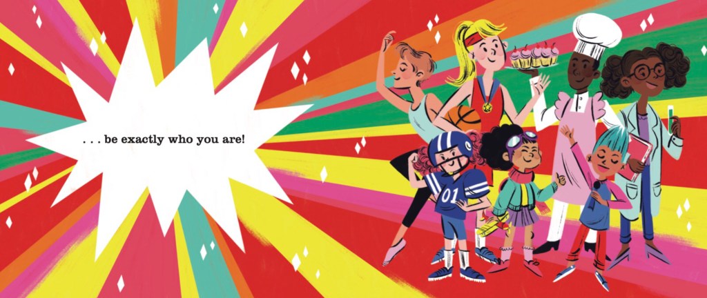 This book gives a message about stereotypes in a way that kids can understand. It will say that girls like this and boys like that. But then they’ll say my new favorite sentence. “Except when they don’t.” they’ll say. So true! I love blue! And I like wearing jeans with holes in them outside, running around and playing sports. If anyone ever says “You’re just like a girl! You do girl things and where girl clothes!” don’t believe them. Tell them: “There is no such thing as a girl or boy color of outfit! Everything is for everybody!” Because it’s true! Everything belongs to everybody! I haven’t read I picture book that I’ve loved as much as this in a very long time. I hope you enjoy it! On the marianarchy scale: 5/5 stars!